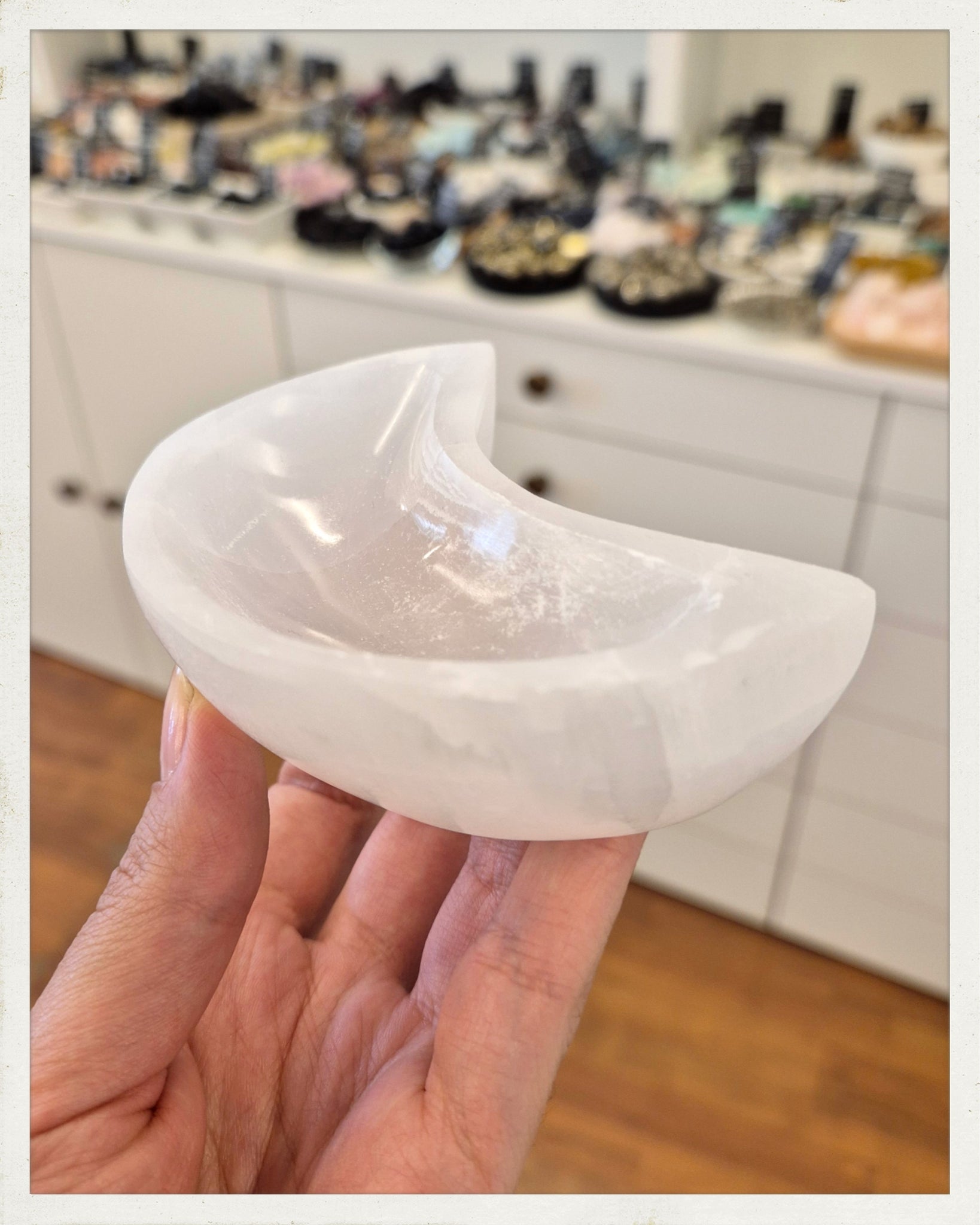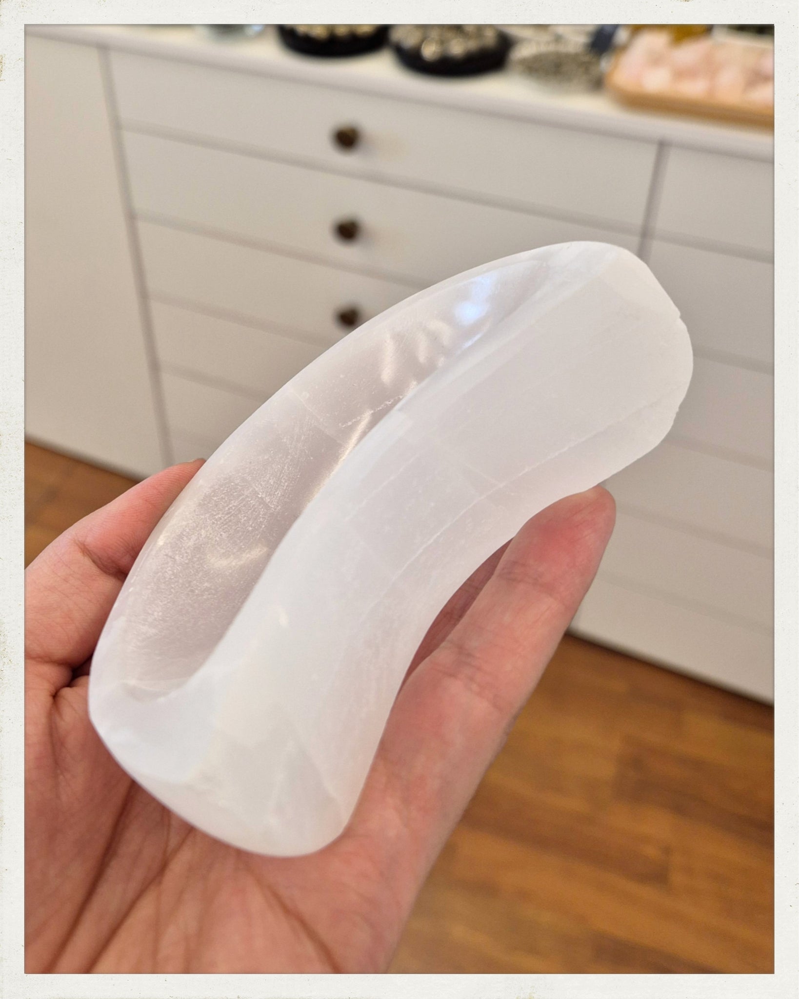 Cuenco de selenita (yeso fibroso) procedente de Marruecos.